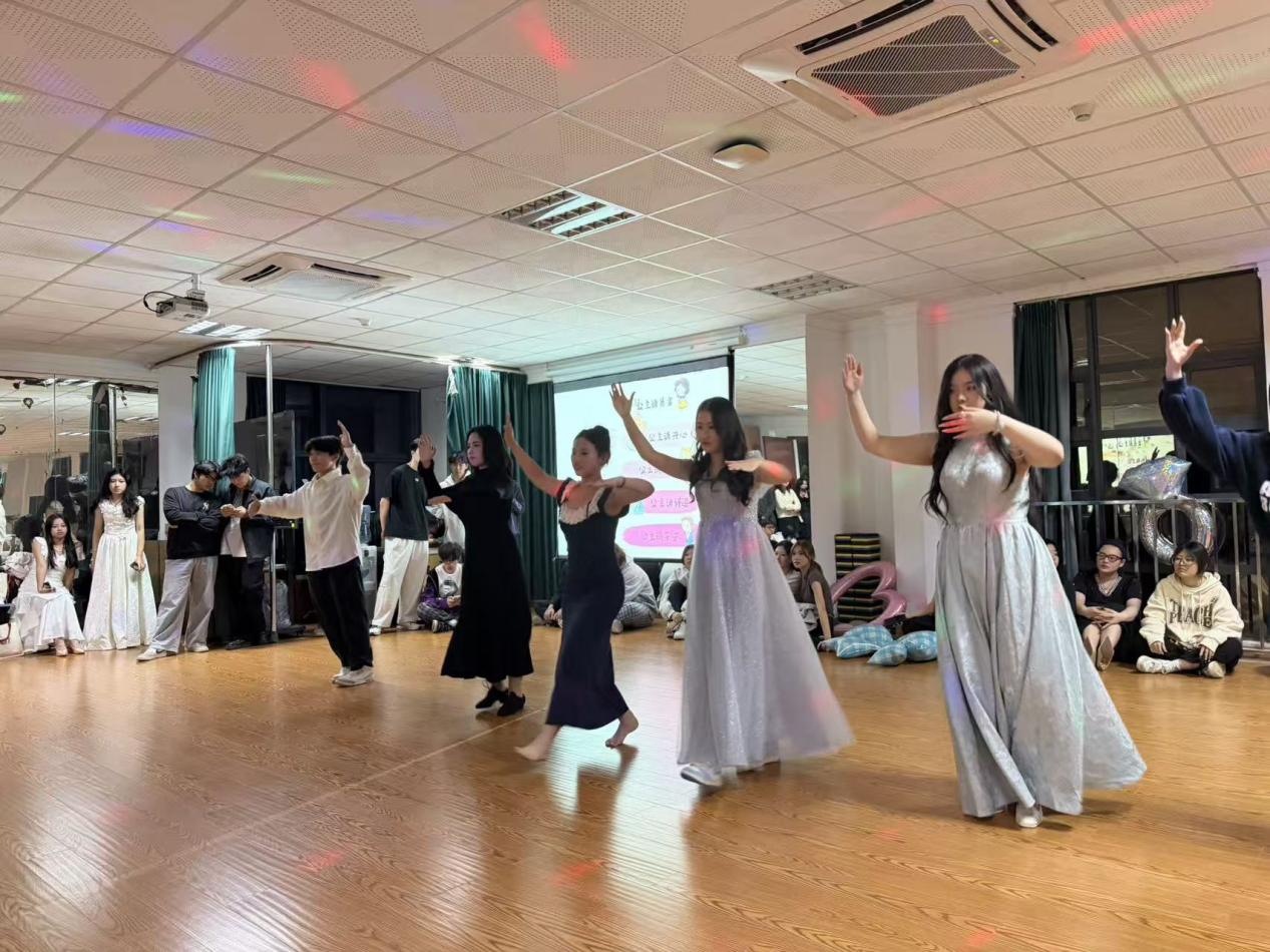 灯光流转间,同学们换上精致的礼服,伴着悠扬的舞曲翩翩起舞,国标舞不同舞种的魅力在现场交织绽放。大家以舞为媒,在旋转与律动中增进友谊,也在沉浸式的艺术体验中,深化了对“美”的感知与表达。这场舞会早已超越了舞蹈技巧的学习,成为一场兼具美育熏陶与社交实践的成长课堂。